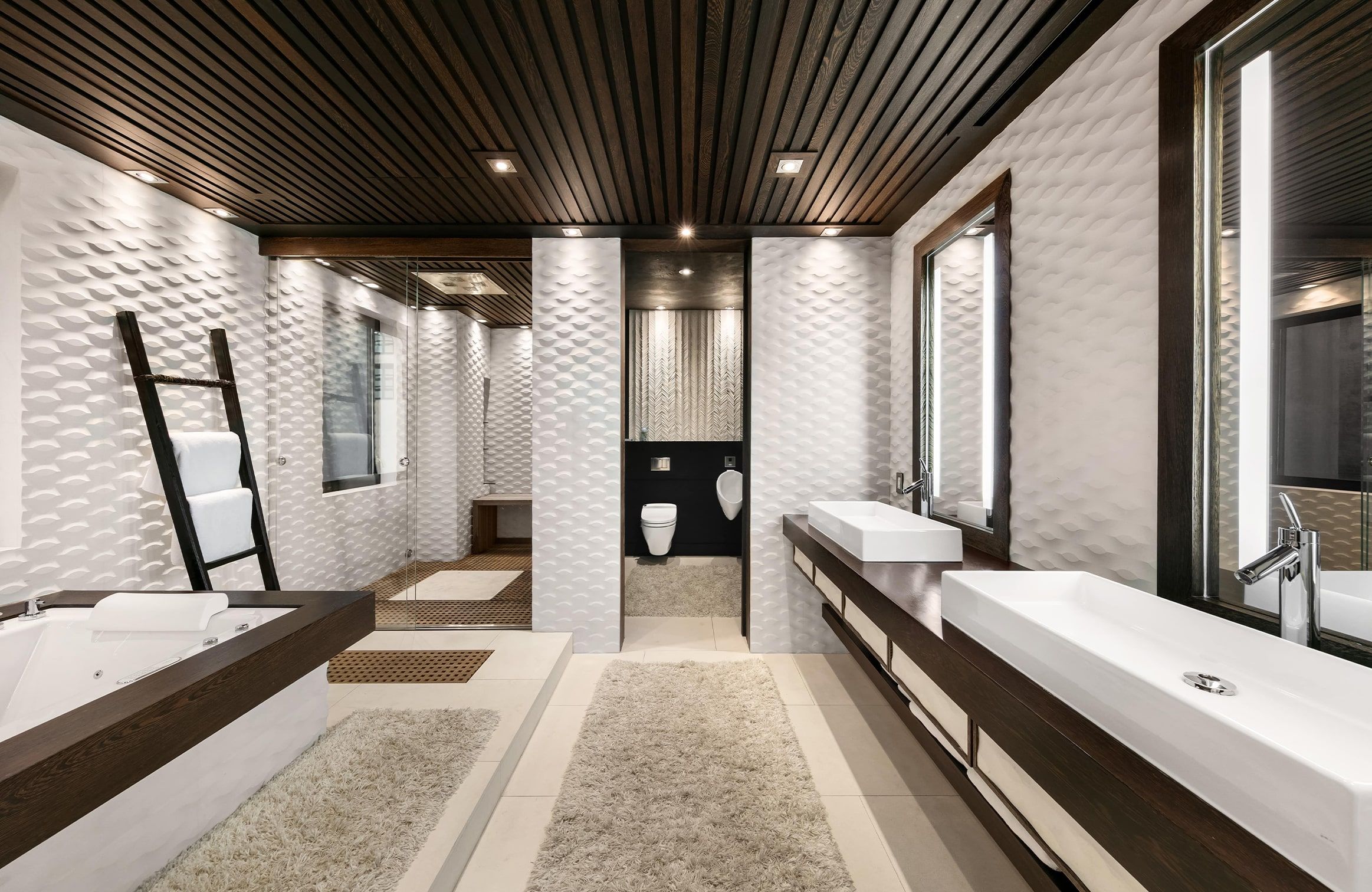 The en-suite bathroom is a spa lover’s dream complete with a digital Kohler steam shower, deep soaking Kaesch tub, and a wall-hung Toto Pacifica toilet. The custom vanity has been made out of specially-sourced solid Wenge wood along with the ceiling treatment.